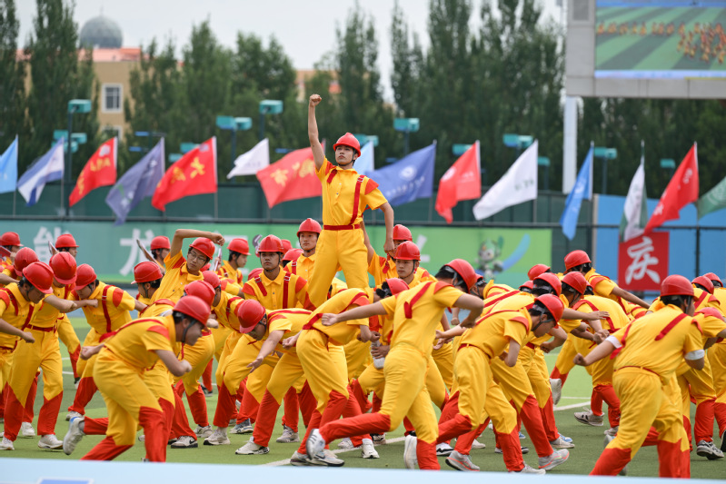 冰雪淬炼钢筋铁骨,石油熔铸滚烫热血,黑土滋养凌云梦想——三江平原的脉动在此刻轰鸣!红旗翻涌,汇成赤色长河;会旗跃动,宛如青春乐章。前章舞者汇聚成潮,青春舞步踏响时代节拍。当《青春畅想》响彻云霄,“让我们走在追梦路上,把美好梦想放声歌唱……”,大家随着音乐舞动,犹如无数年轻的心在同频跳动。《青春志·向未来》作为的未来篇章,精彩展现了青年一代昂扬向上的精神风貌。