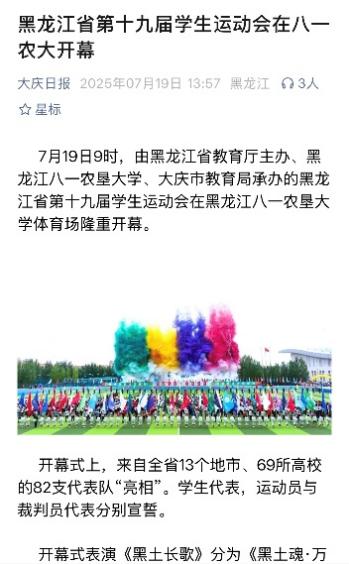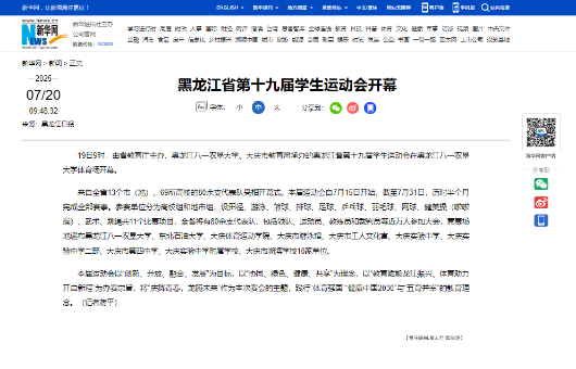 让我们共同期待运动员们的精彩表现,预祝黑龙江省第十九届学生运动会圆满成功!