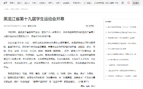 黑龙江日报、黑龙江广播电视台新闻法治频道、大庆日报等媒体平台进行深度报道,黑龙江省教育厅公众号刊发了推文,截止7月20日17时,阅读总量达到30万次。