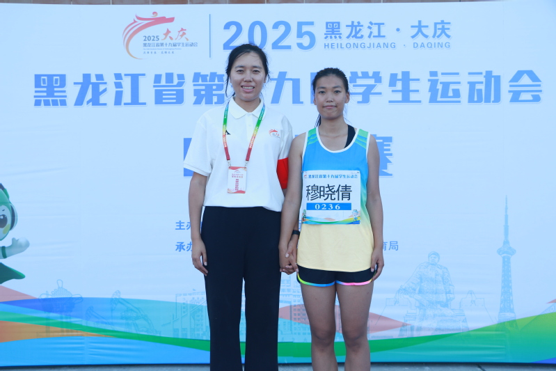 7 月 22 日 16 时 27 分,在女子甲组三级跳远决赛中,我校运动员穆晓倩凭借扎实的竞技功底和稳定的赛场发挥,勇夺冠军,这是我校在黑龙江省第十九届学生运动会田径项目的首枚金牌。